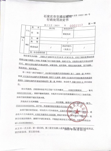 孙立光驾驶的冀A.3P89L未取得出租汽车客运经营许可,擅自从事出租汽车客运经营冀石交罚〔2025〕0001117 号